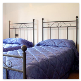 - quattro camere accoglienti, molto confortevoli, finemente arredate in stile rustico, con letti in ferro battuto, armadi in legno massello, stile arte povera, e tutte comprensive di TV, complete di biancheria da letto e da bagno